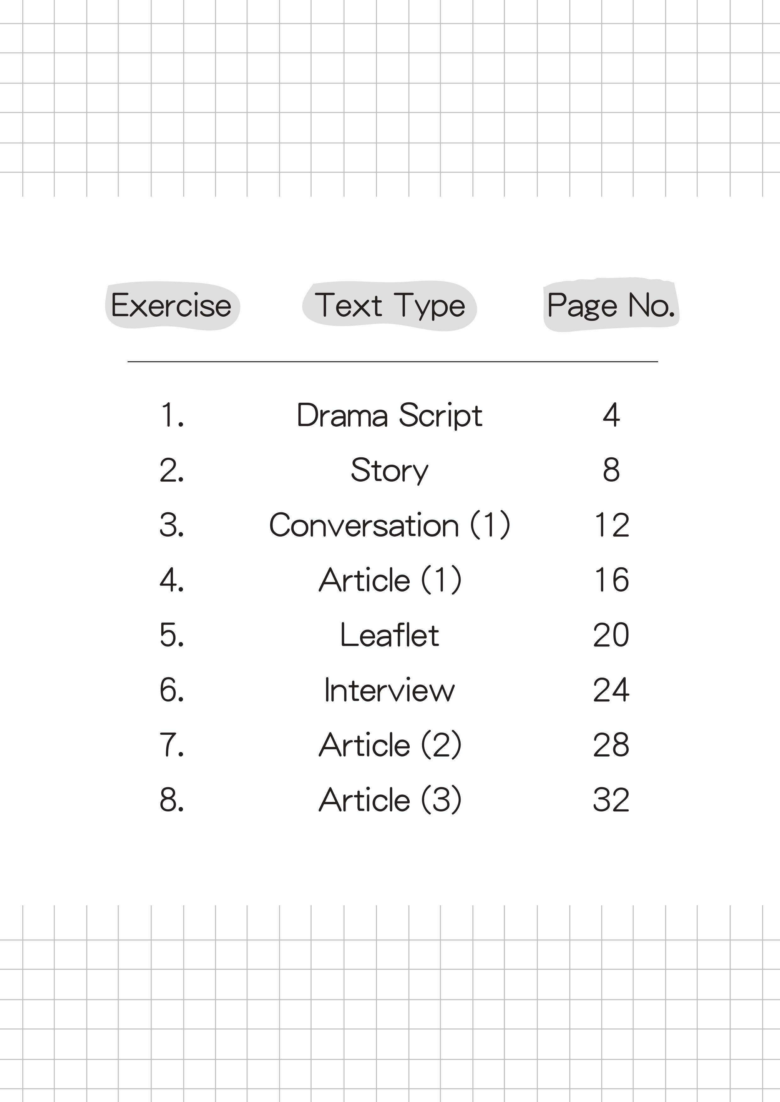 - 閱讀材料涵蓋不同的文章體裁,以配合教育局在英語課程各關鍵階段中規定的文本類型