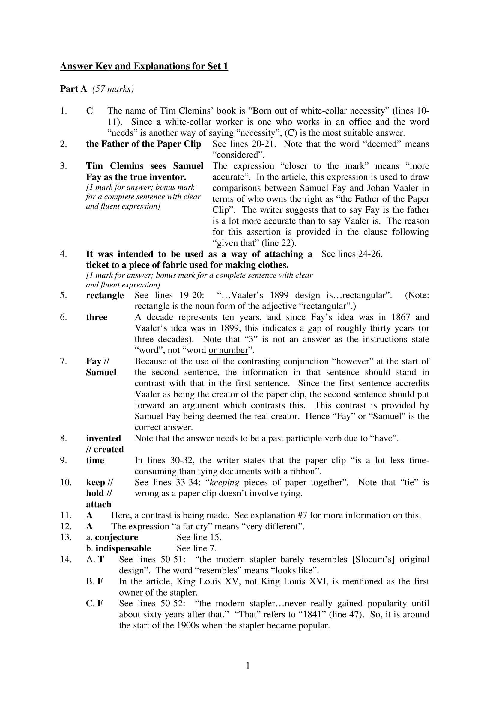 ◊ 1. MARKING SCHEMES which simulate the ones released by the HKEAA,