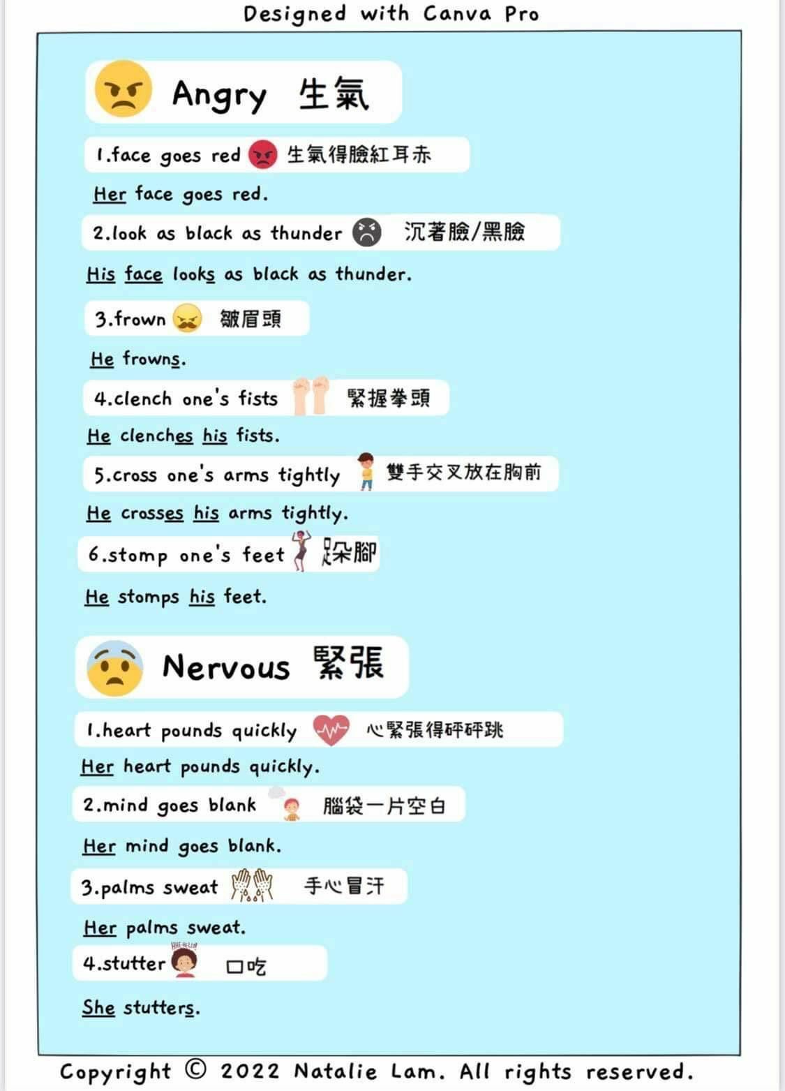 此書把數多年來試卷裡常出現的感受和相關肢體語言英文寫法編寫整合。筆者也用心花了超過3個月時間請插畫師以「火柴人」形式改編所有試題圖例,摒棄白底黑字的形式,希望鼓勵小朋友寫作和創作💛