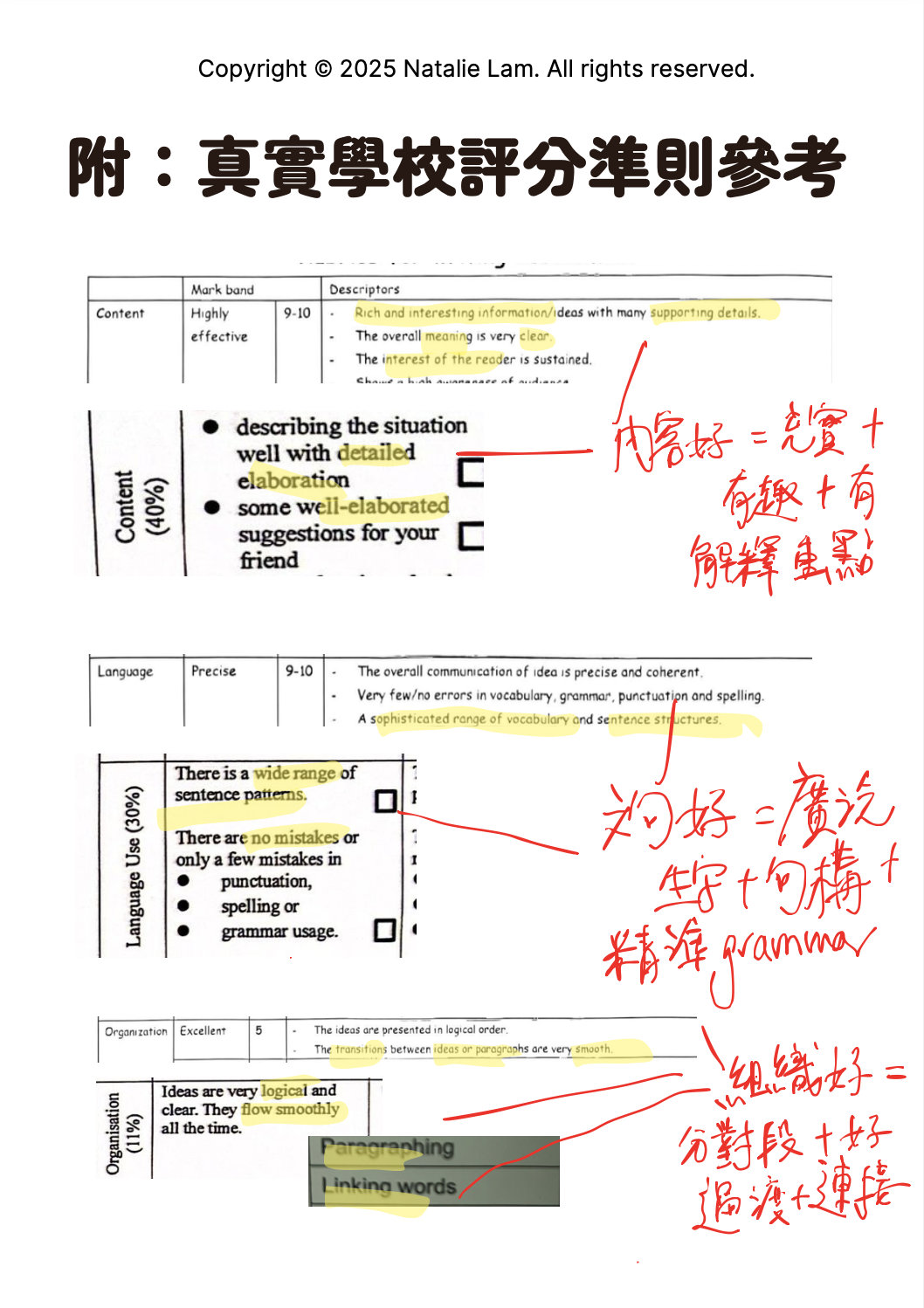 1. 分析學校英文作文評分準則 -「內容」、「文句」、「組織」分數要點🔥