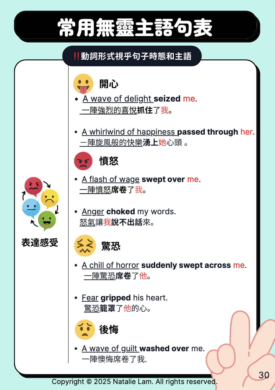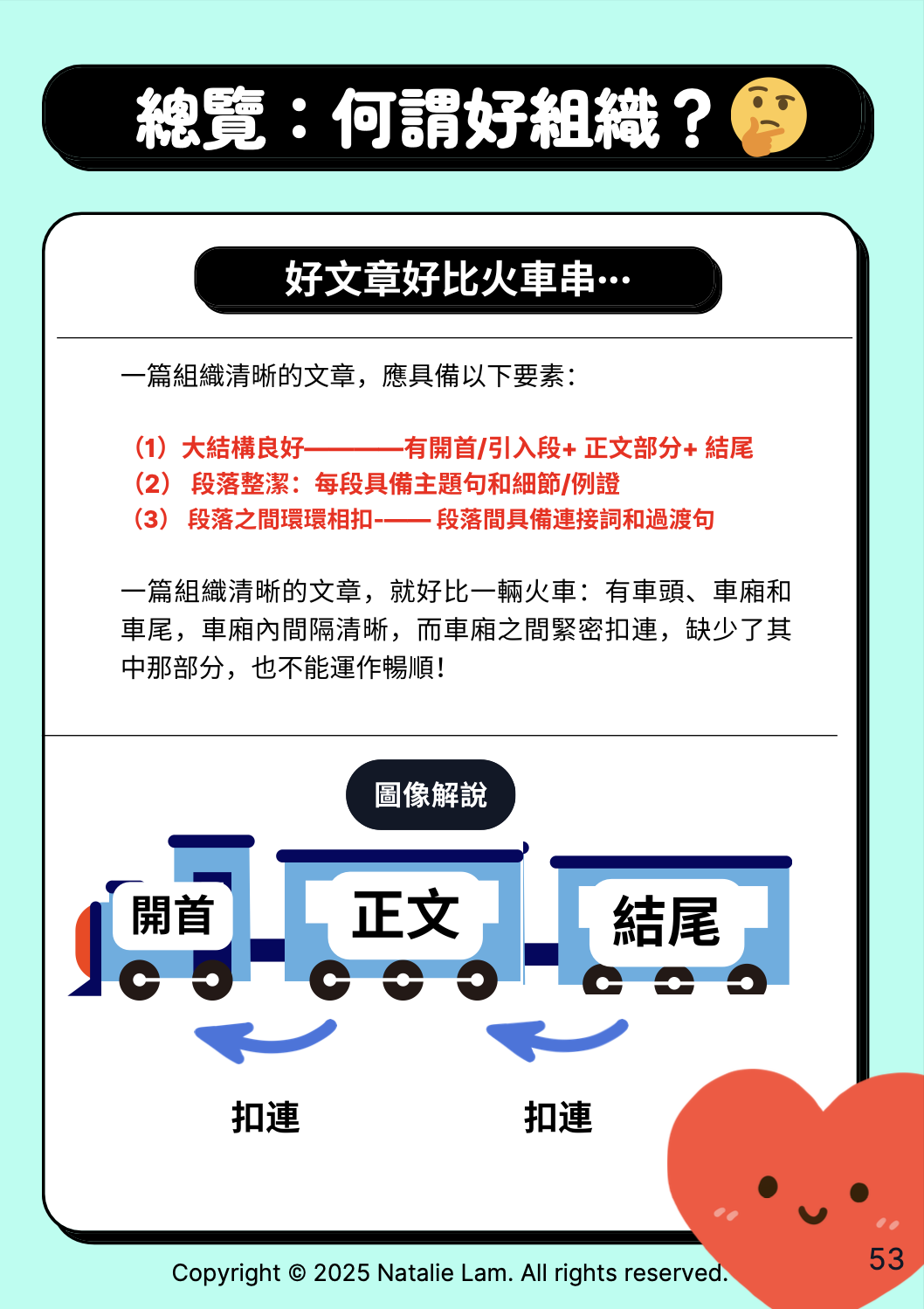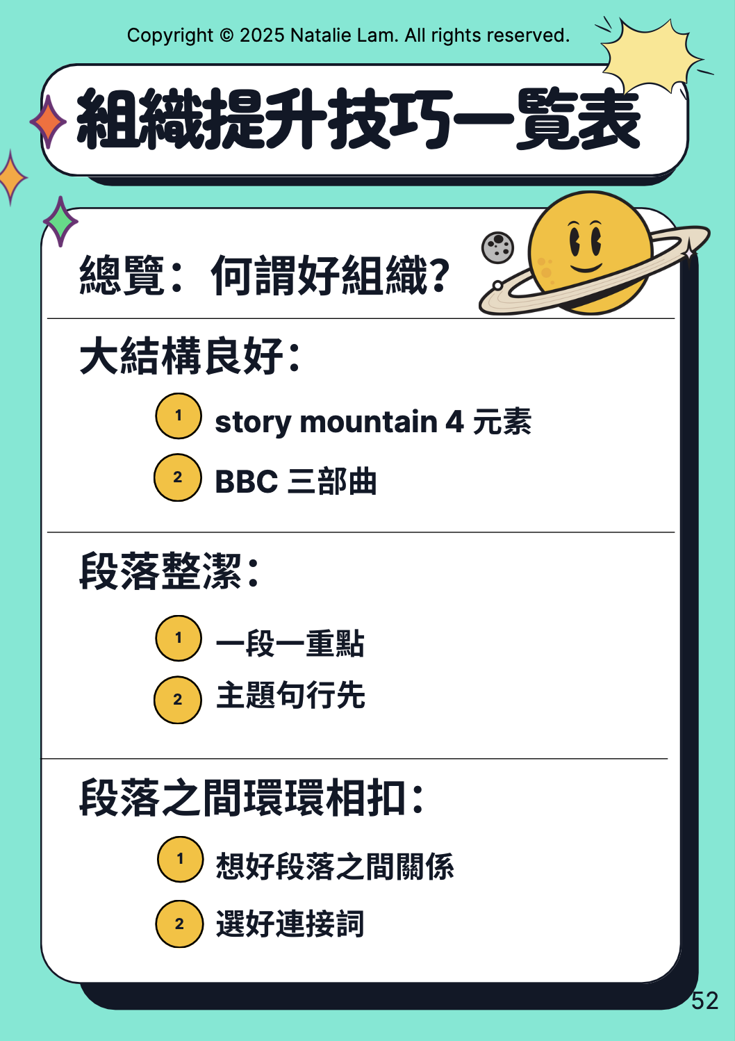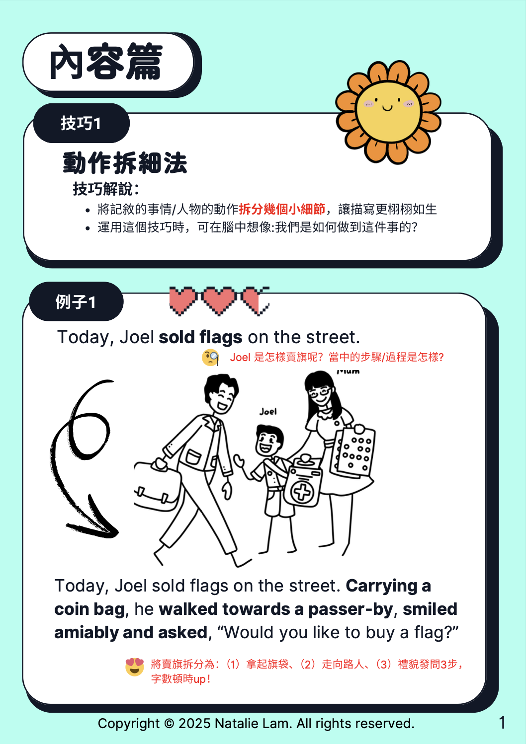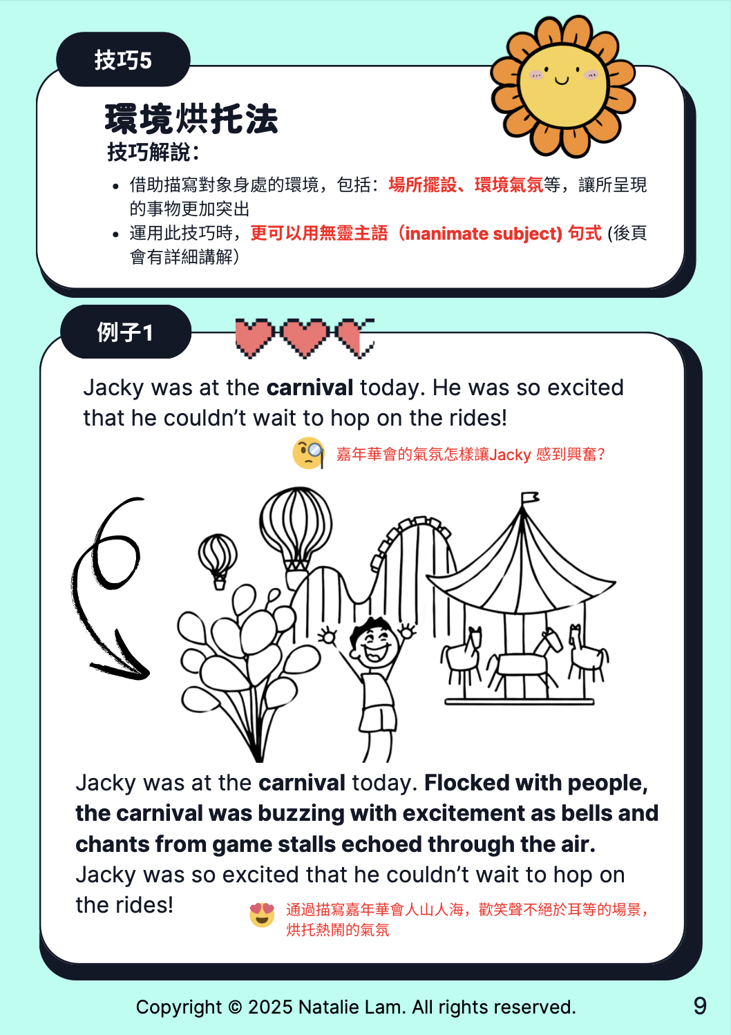 5. 配合 Miss Natalie 7年教學經驗,寫作課所教授的寫作思維編寫