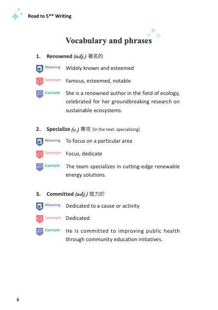 Road to 5** Writing is your essential guide to mastering the HKDSE English Writing Paper. Featuring real essays by two 5** high achievers, this book reveals how top students skillfully plan, structure, and express ideas with clarity and precision. Packed with proven techniques, ready-to-use phrases, and practical tips, it's the perfect companion for exam success.