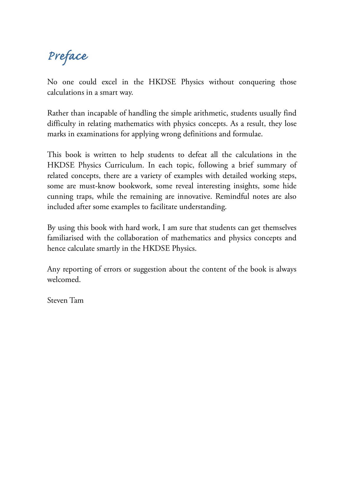 Calculations are key to success in the HKDSE Physics examination. However, students often have difficulty relating mathematics with physics concepts, and lose marks that wouldn't have been lost had they known which formula should be used in the first place. This book is specially written to help students defeat all the calculations in the HKDSE Physics and to ace the examination in a smart way.