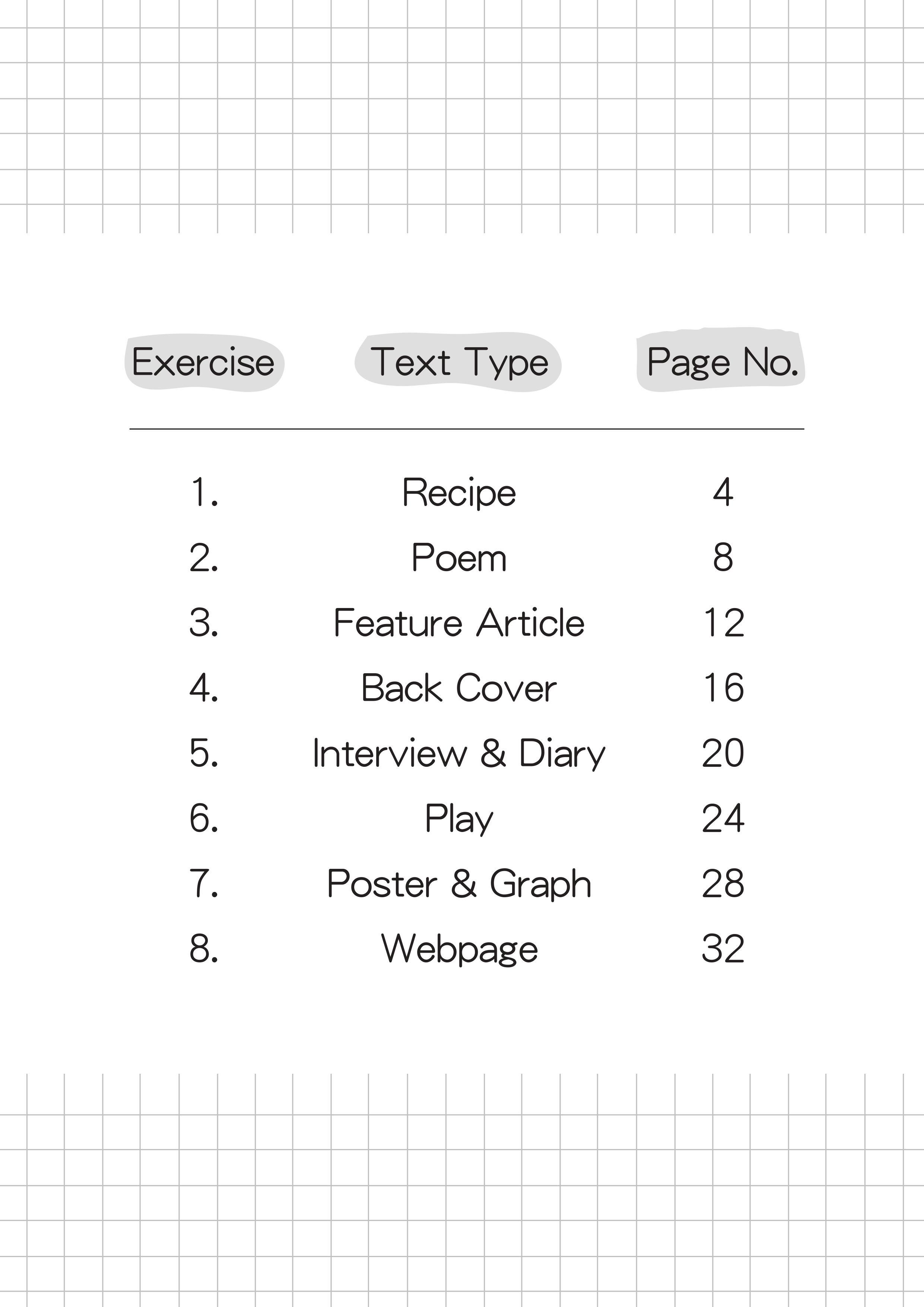 - 閱讀材料涵蓋不同的文章體裁,以配合教育局在英語課程各關鍵階段中規定的文本類型