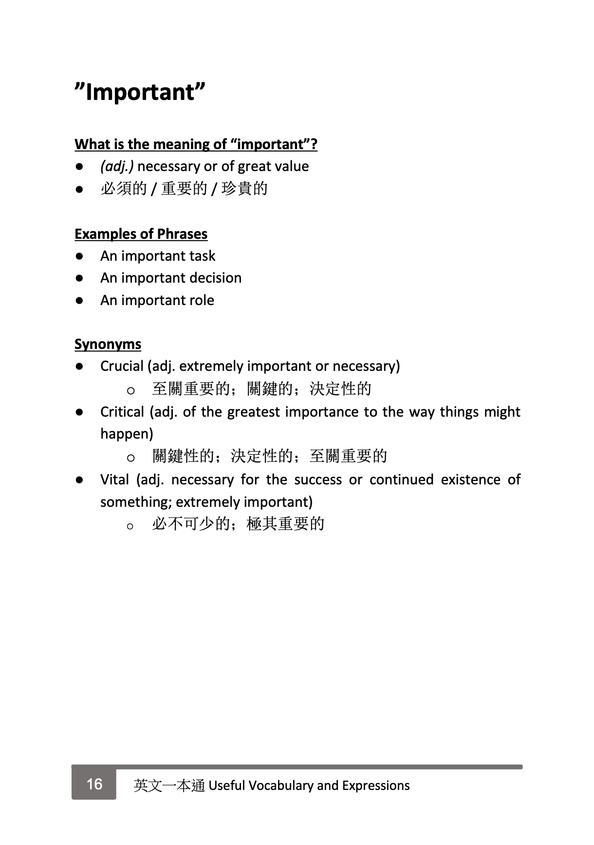 小編嘅筆記裏面,每個 vocab & expression 皆附有詳盡解釋、多項例句、相關字句及同義 (synonyms) 等等