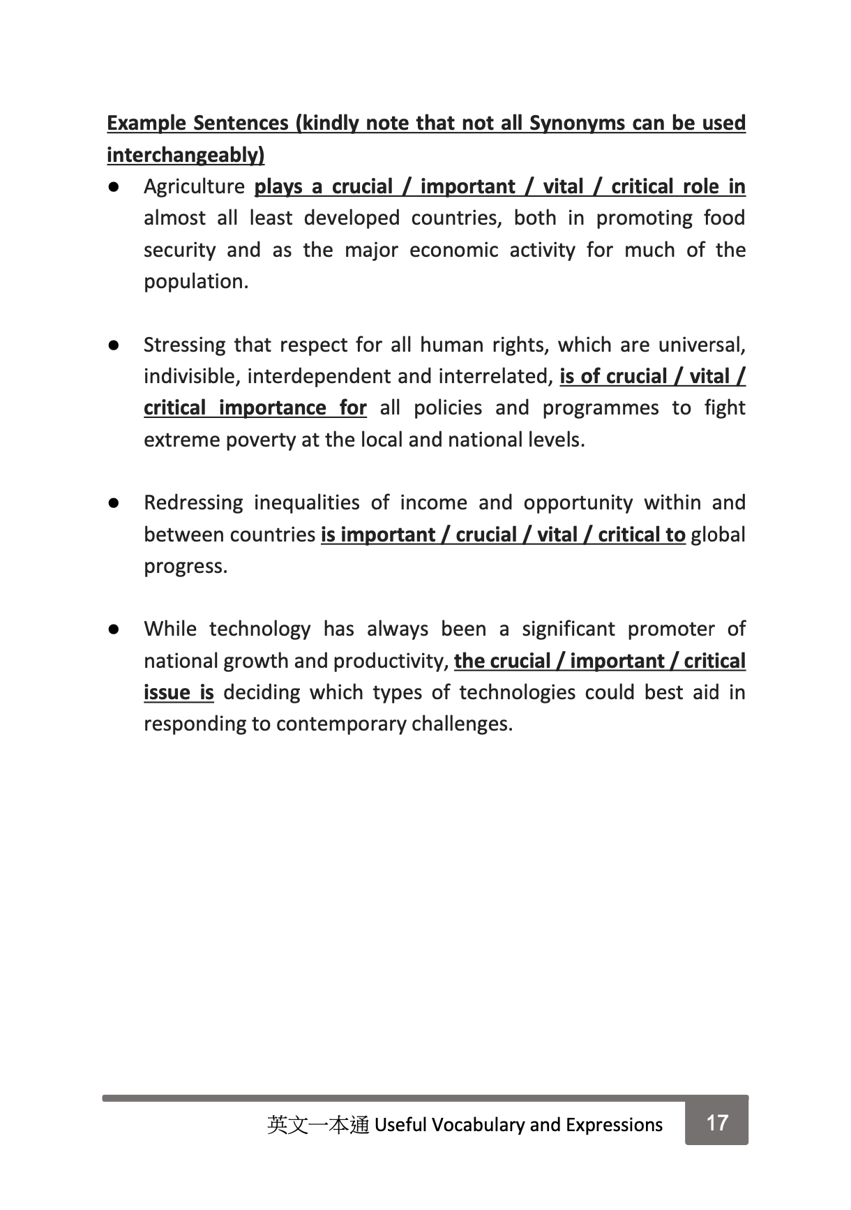 「Vocab、phrases 都好詳盡,每個字都會比唔同例子做示範,同埋仲有 synonyms,溫嗰陣都可以吸收多啲,寫文都唔會淨係單用一個vocab,豐富好多,每個字都可以用係唔同卷,好有幫助!」