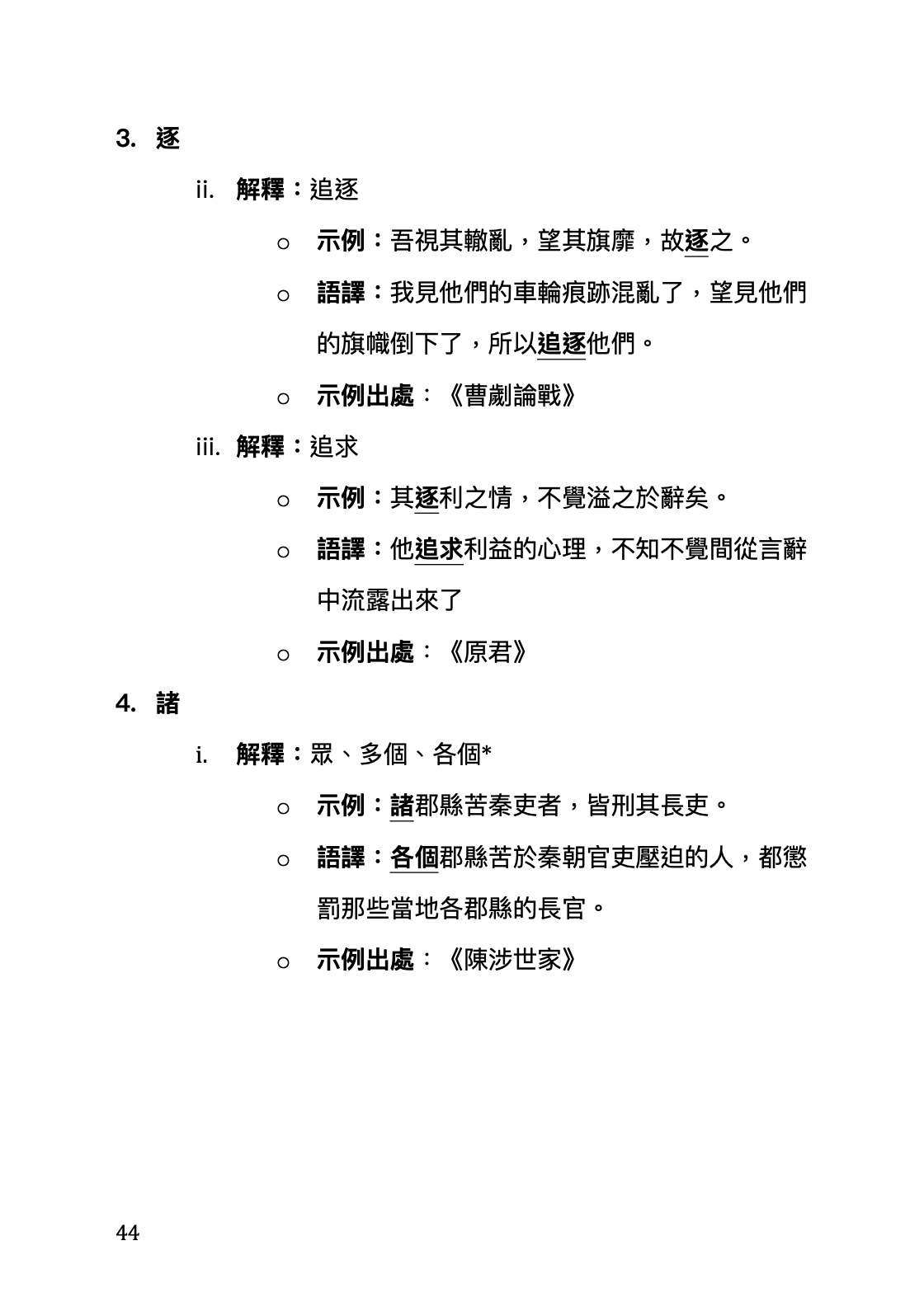 每個字詞都附有詳細的解釋和例句,幫助讀者深入理解其用法。