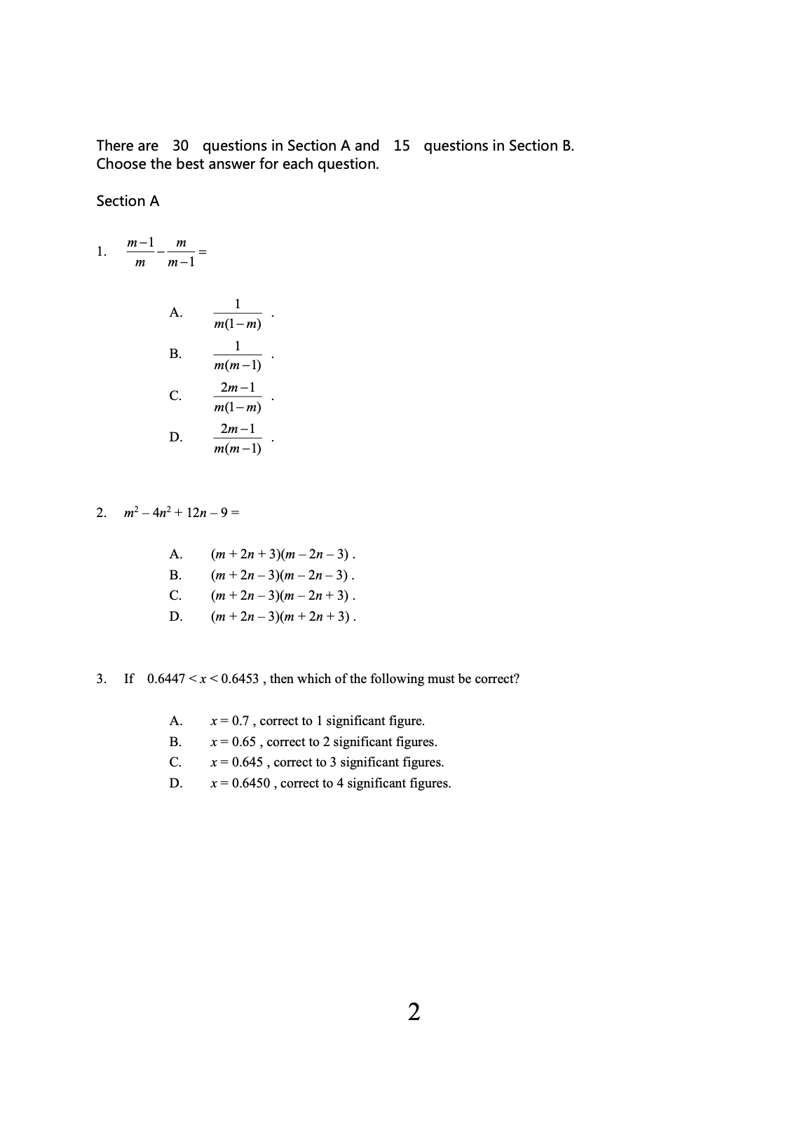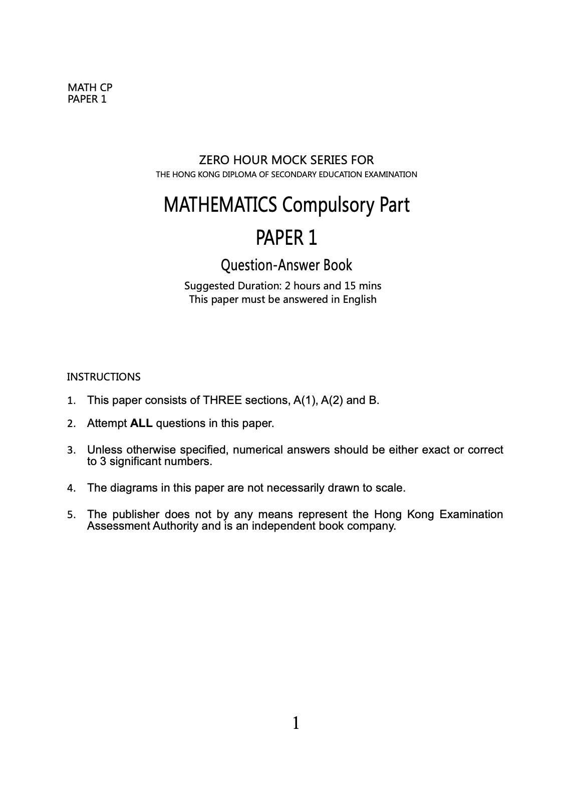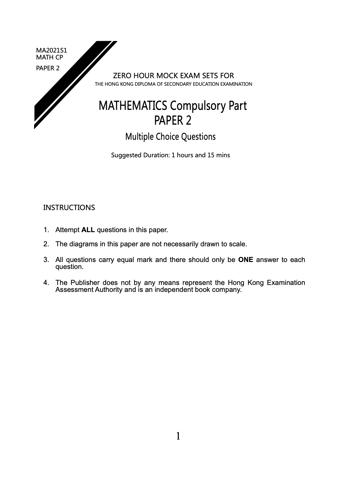 Zero Hour Mock Series - HKDSE Mathematics Mock Exam Papers (Compulsory Part) 1