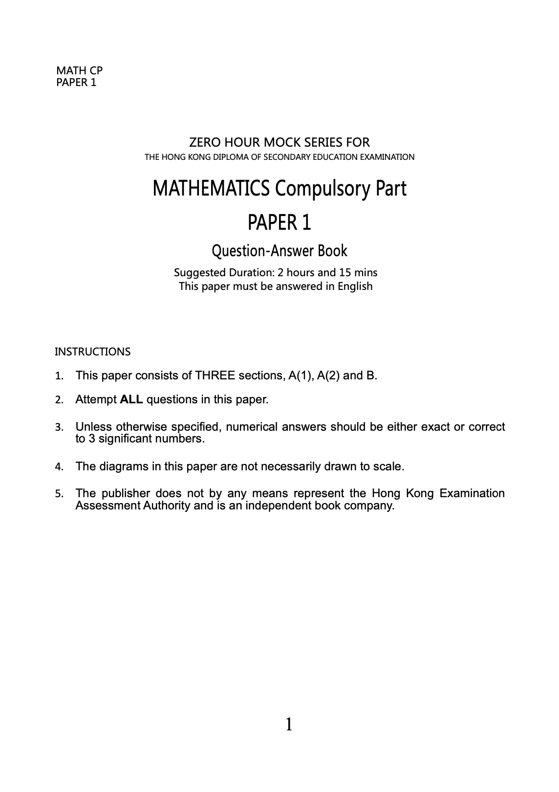Zero Hour Mock Series - HKDSE Mathematics Mock Exam Papers (Compulsory Part) 2