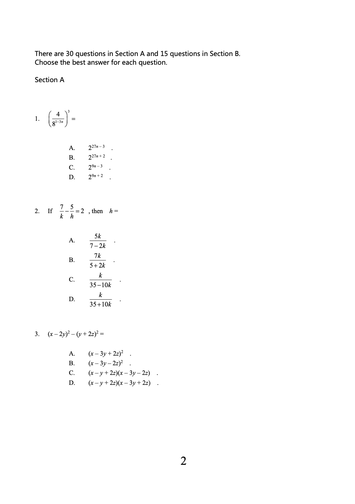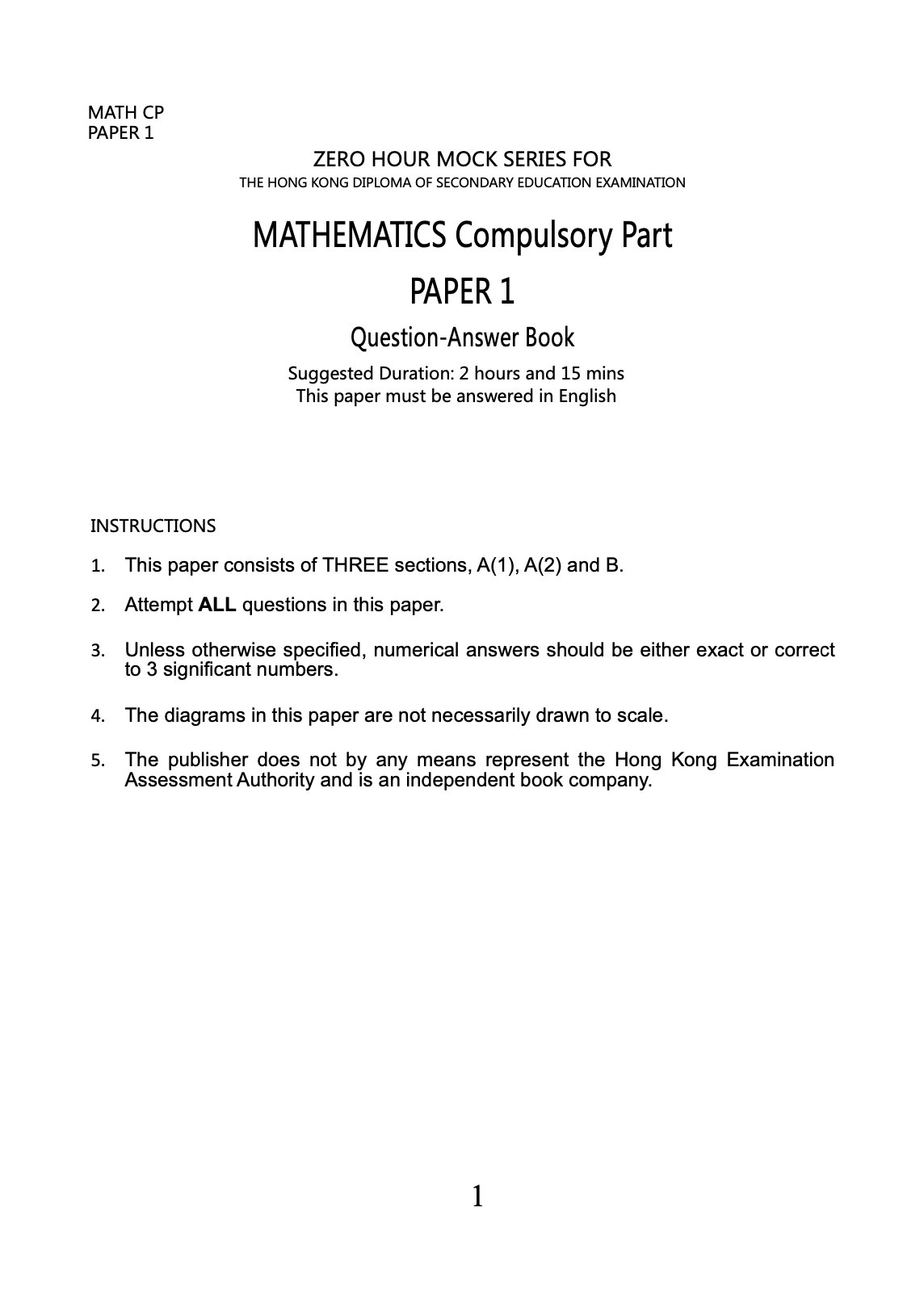 Zero Hour Mock Series - HKDSE Mathematics Mock Exam Papers (Compulsory Part) 4