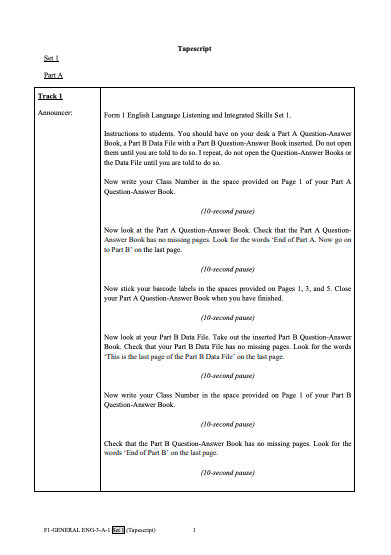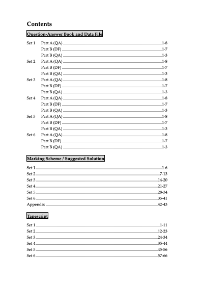 * 包含六套學校考試風格的聽力模擬試題,包含音軌、香港教科書主題和詳細的評分方案 * 幫助學生建立自信,掌握必要的聽力技巧,在考試中取得優異成績